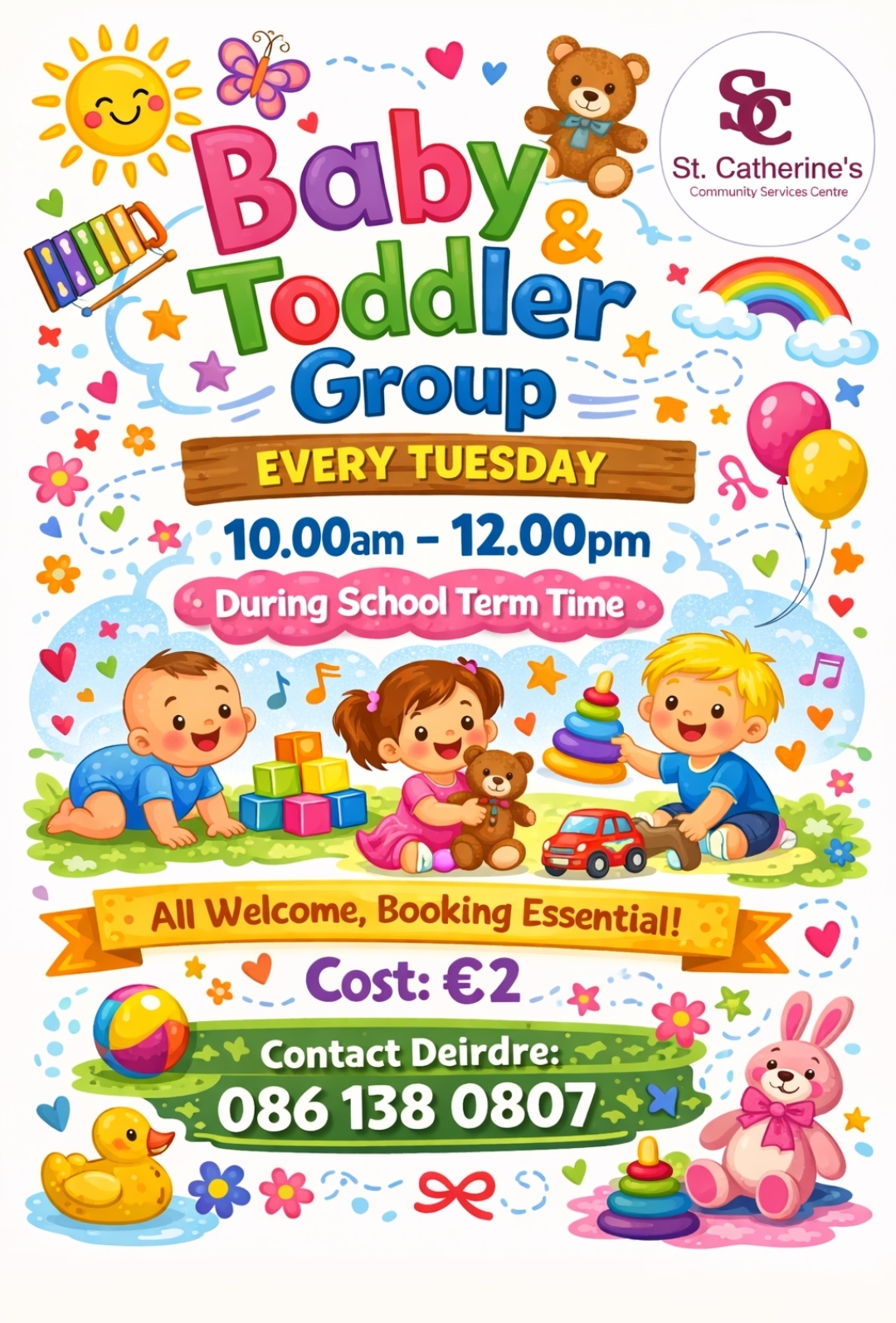 Baby & Toddler group is based in St. Catherine’s Community Service Centre, every Tuesday morning from 10.00am to 12.00pm during school term time.